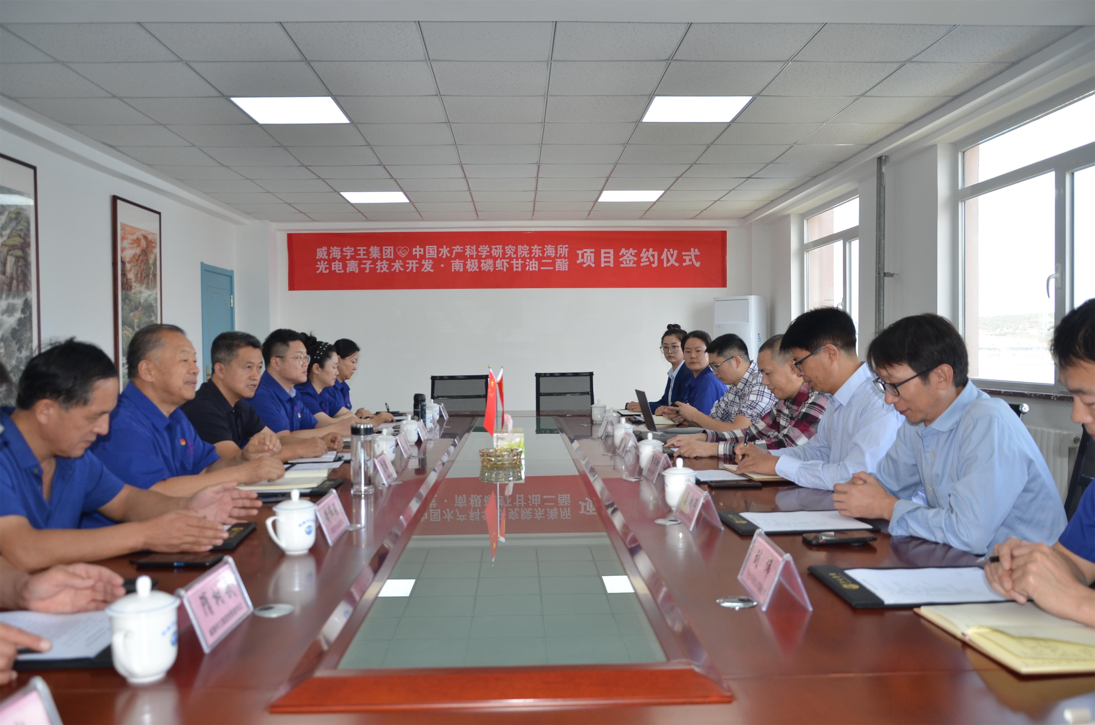10月10日上午,威海市宇王集團(tuán)與中國水產(chǎn)科學(xué)研究院東海所“光電離子技術(shù)開發(fā)·南極磷蝦甘油二酯”項目簽約儀式在軍融科創(chuàng)大樓會議室隆重舉行。威海市科技創(chuàng)新發(fā)展中心副主任于海、環(huán)翠區(qū)科技局副局長黃偉強、東海所成果轉(zhuǎn)化處長房文紅、宇王集團(tuán)董事長苗強、總經(jīng)理苗佳琳等出席會議。
